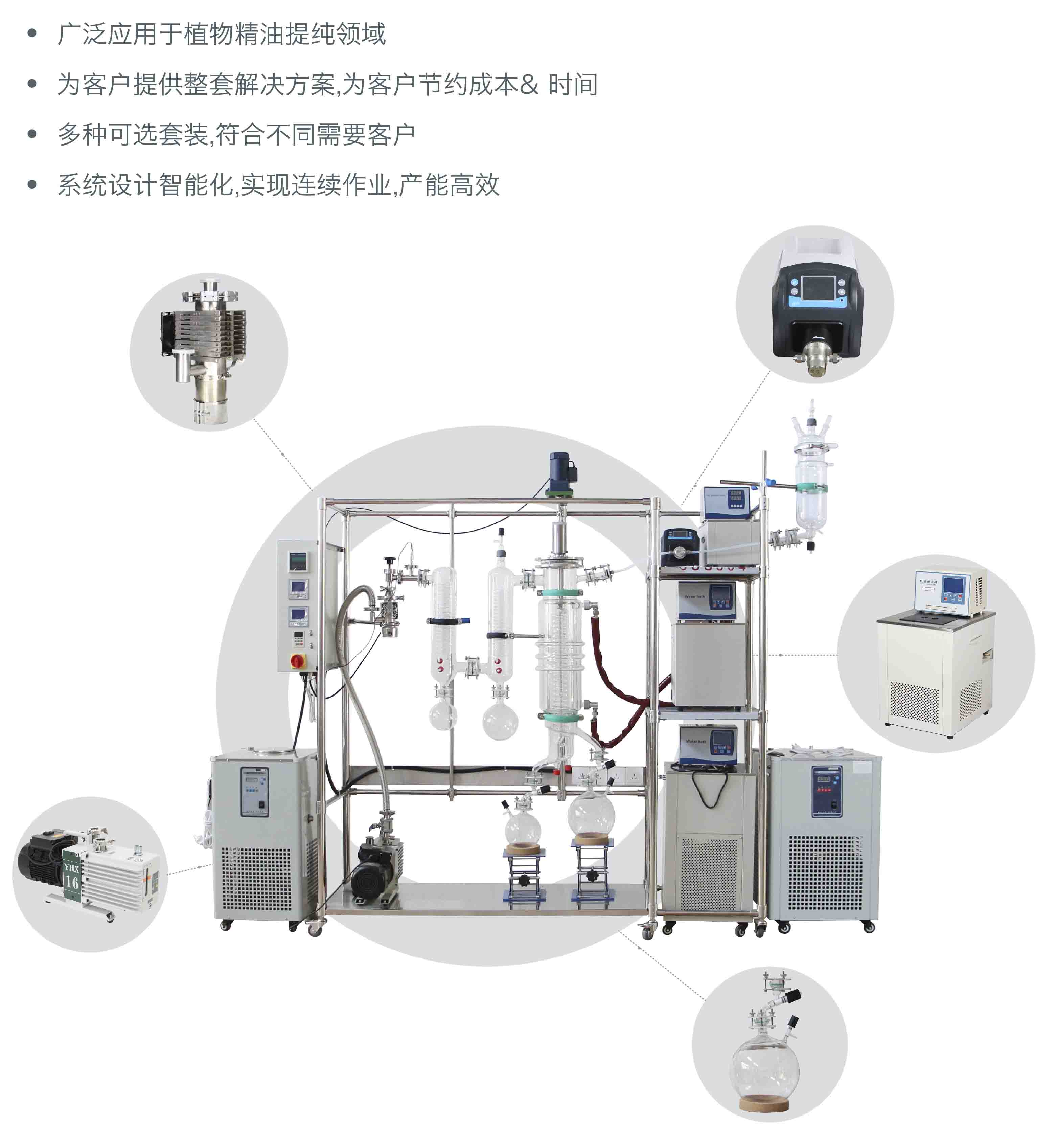 利用分子蒸餾的工作原理,我們的MD系列短程分子蒸餾系統(tǒng)是一種植物精油提純設備,用以獲得高純度的精油。
