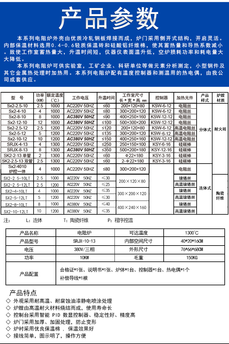 馬弗爐(分體箱式電阻爐)周期作業式,供實驗室、工礦企業、科研單位對小型鋼件熱處理,金屬、陶瓷材料燒結、熔解、分析及高溫加熱用。