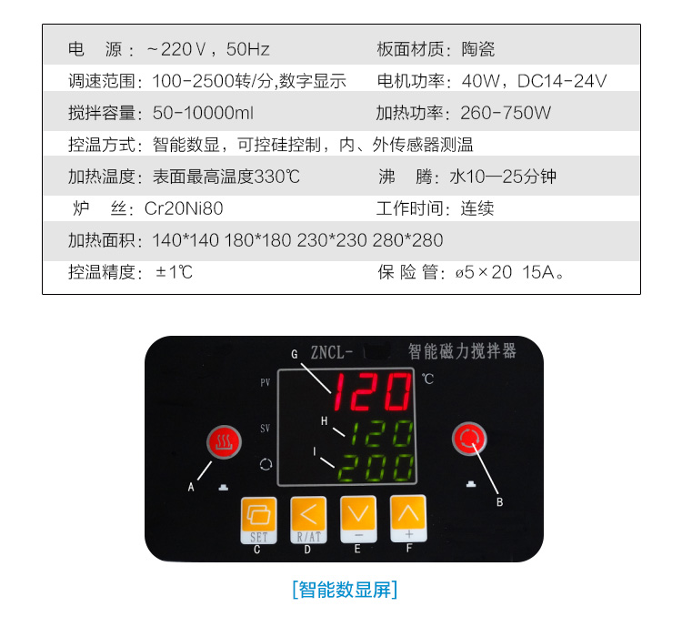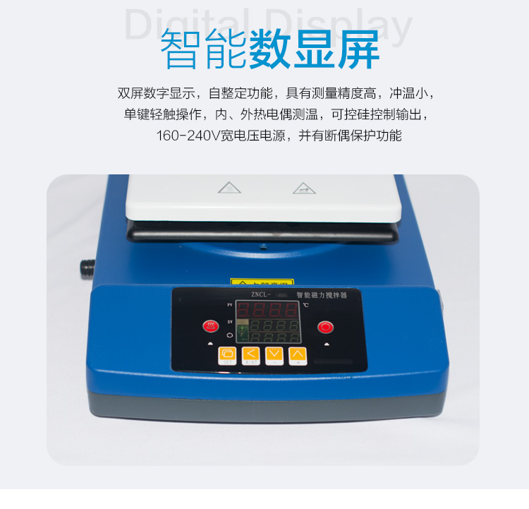 數(shù)顯磁力(加熱板)攪拌器,采用方形陶瓷面板加熱面加熱,美觀防腐;電源:220V/50Hz(可做出口型110V/50Hz)控溫范圍:室溫-380度,控溫精度:±1℃,轉(zhuǎn)速范圍:0-2500轉(zhuǎn)/分,加熱攪拌面盤分四種:140×140mm、180×180mm、230×230mm、280×280mm;定時(shí)功能、調(diào)壓功能可選。