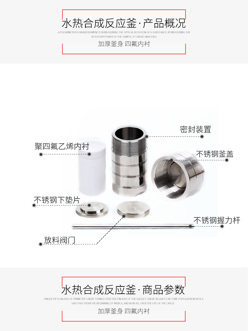 構成:不銹鋼鋼套、釜蓋、聚四氟乙烯內杯(內襯)、鋼棒、不銹鋼墊片(兩片)。